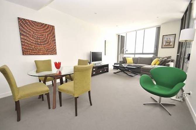 The property offers light filled living & dining areas and generous bedroom with ensuite bathroom and walk-in wardrobe. This one bedroom apartment comes complete with towels and linen, modern furniture, fixtures and fittings including a DVD player, WIFI, plasma TV, washing machine, dryer, dishwasher and air conditioning. The apartment also includes access to a gym and swimming pool. Parking is also available.