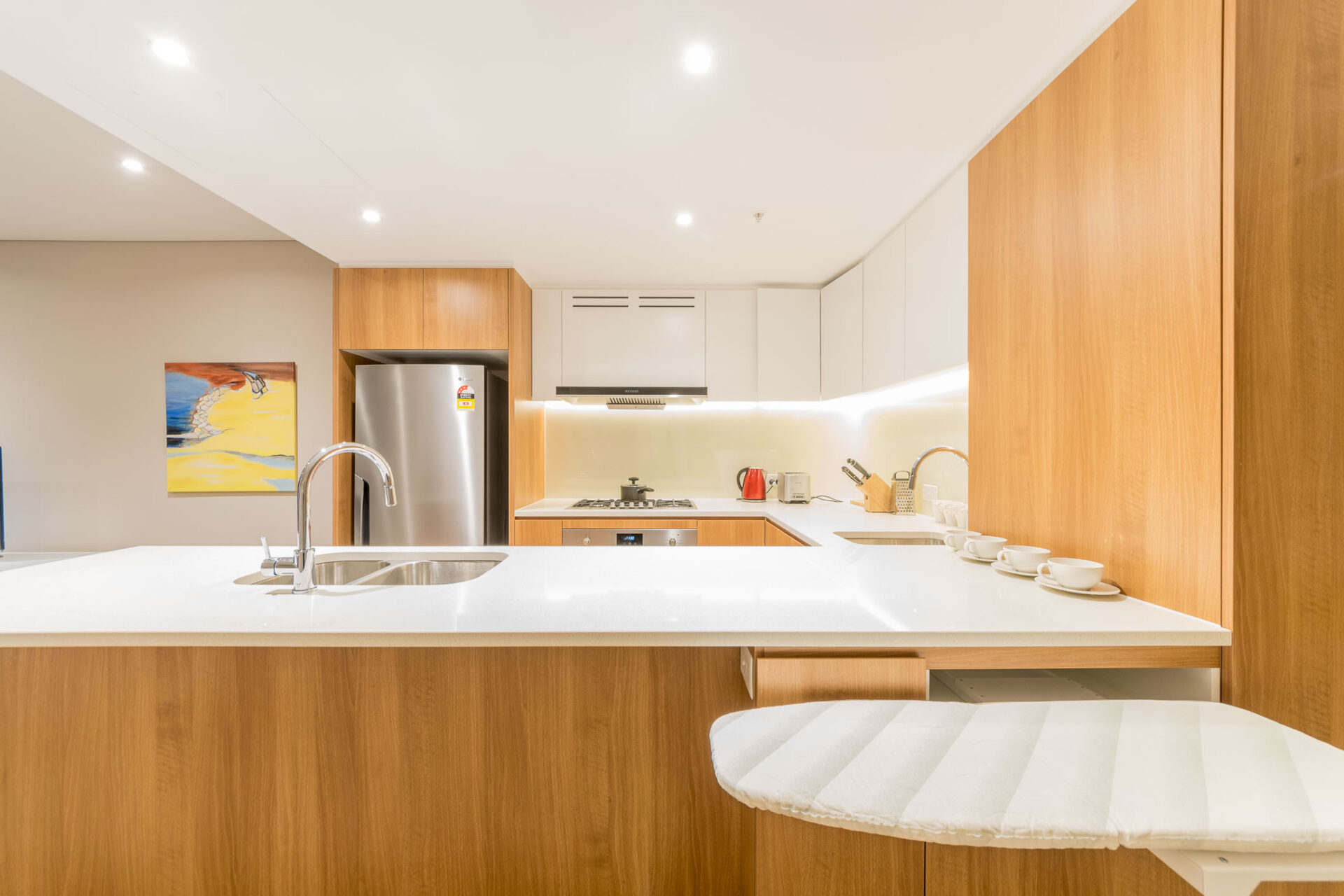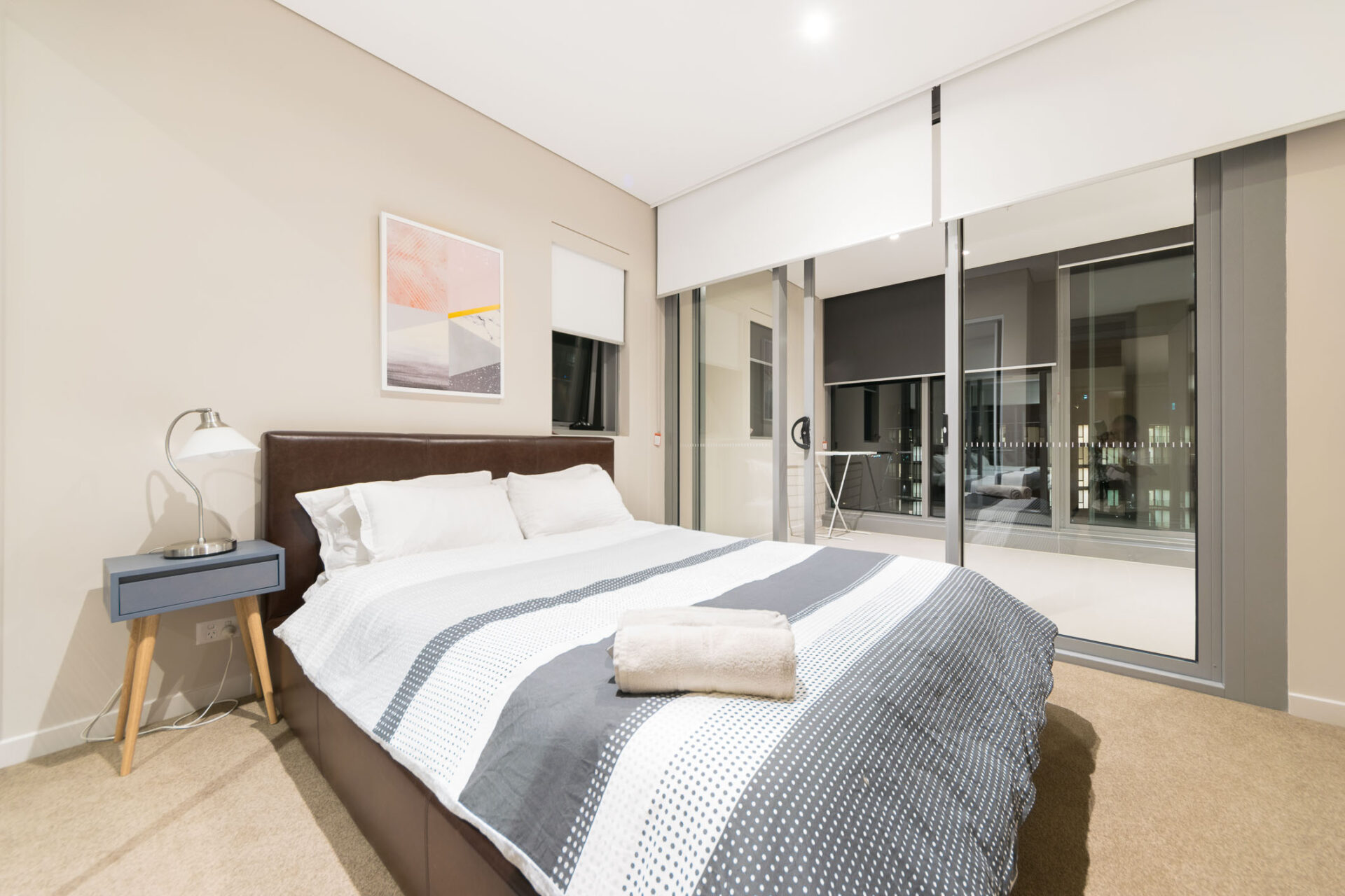 Our modern fully furnished one bedroom apartments are of comfortable size with open plan living style. Bedroom with Queen bed and wardrobe, linen provided, one bathroom, fully equipped kitchen with cooking facilities, internal laundry and air-conditioned. Majority of our Wentworth Point apartments are on high level with unobstructed views and include car space but please check individual apartment features. WIFI provided for extra convenience. Suitable for executives or couples who wants a hassle free stay, short term or long term. Enquire now.