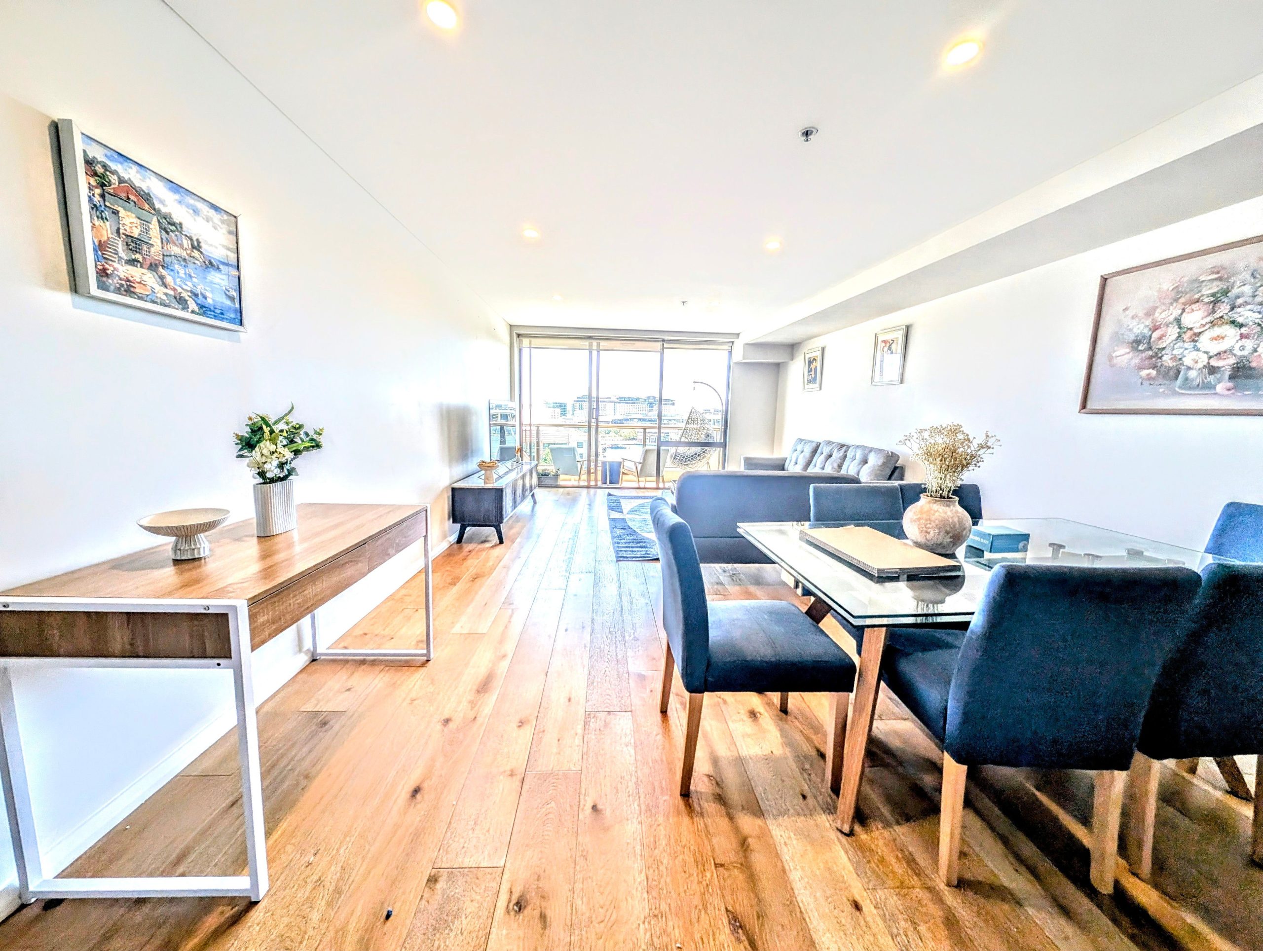 Modern Sydney apartment with views of the CBD. Fully furnished and air conditioned 2 bedroom / 2 bathroom apartment, with parking.